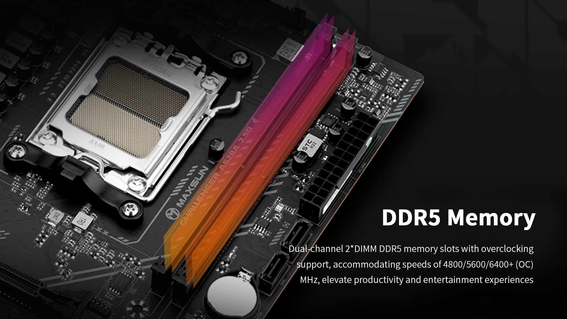 - 2 x DDR5 Memory Slots, Supporting 4800/OC+ Memory Speed
