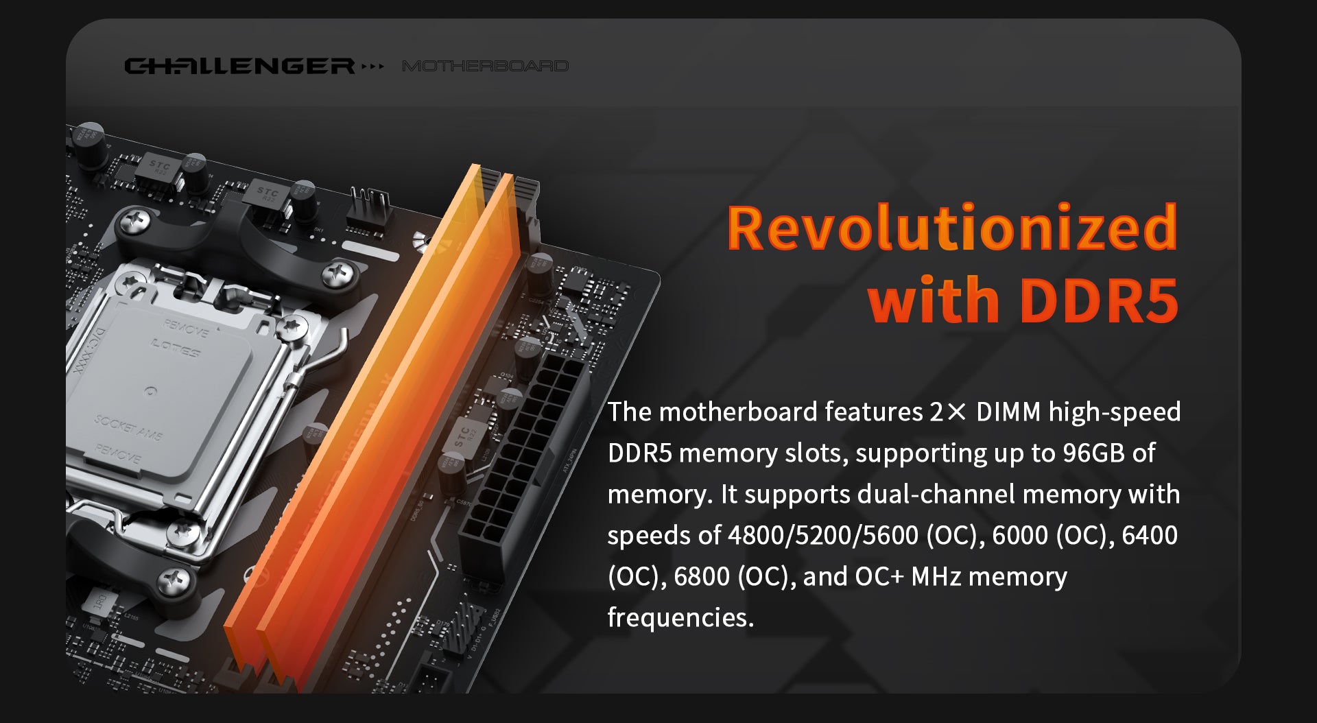 - 2× DIMM DDR5 slots, supports up to 96GB