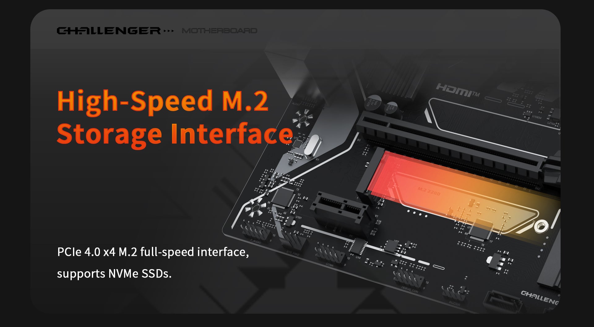 高速ストレージサポート – 高速アクセスを実現する PCIe 4.0 M.2 および SATA。