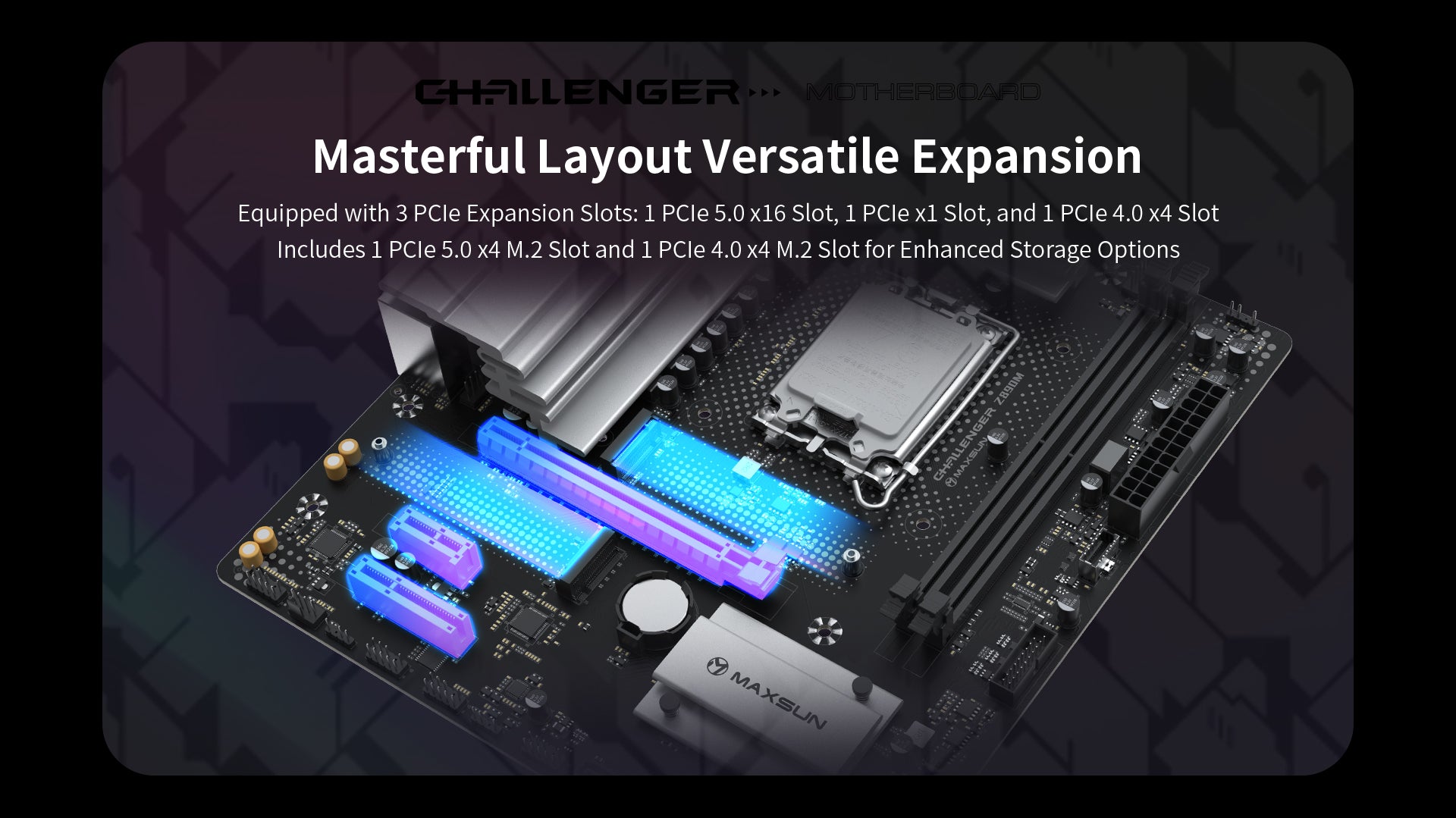 - Versatile PCIe Slots: PCIe 5.0 x16, PCIe 4.0 x1, PCIe 4.0 x4