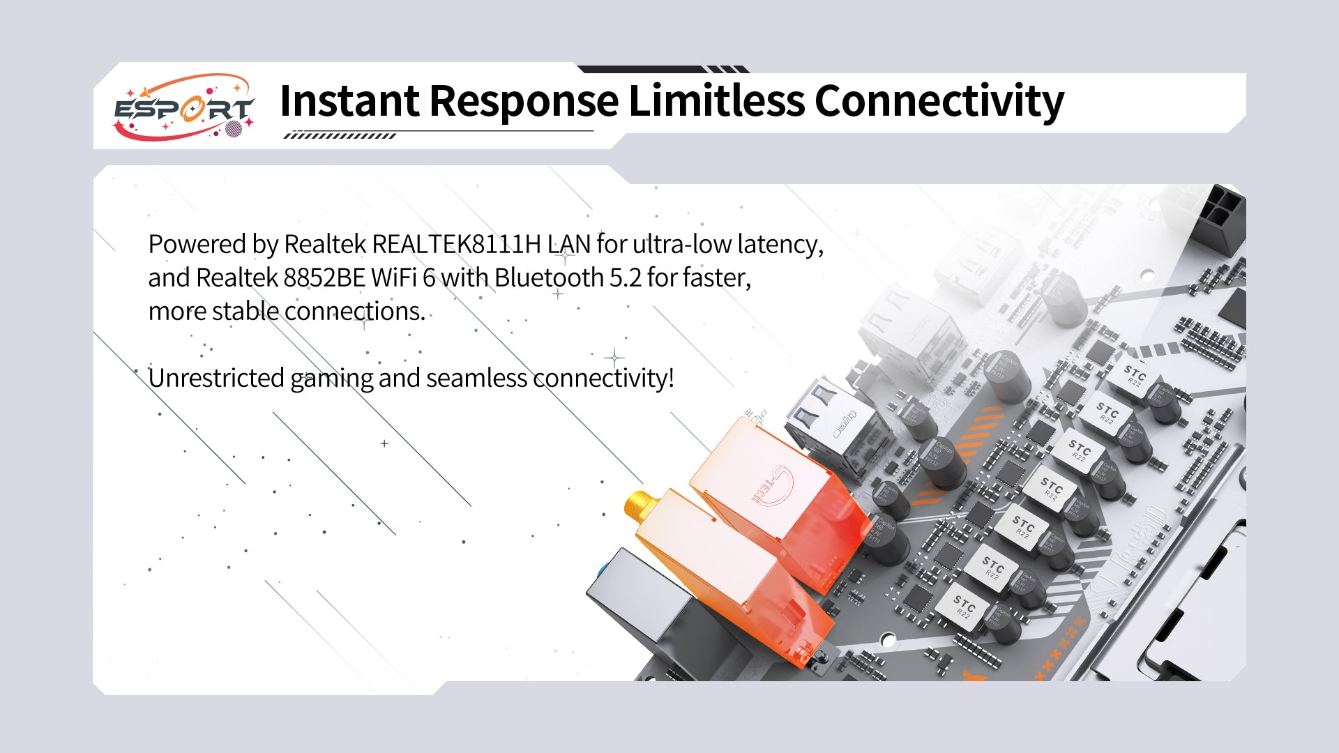- Realtek 8111H Gigabit Ethernet, Wi-Fi 6 (Realtek 8852BE), Bluetooth 5.2