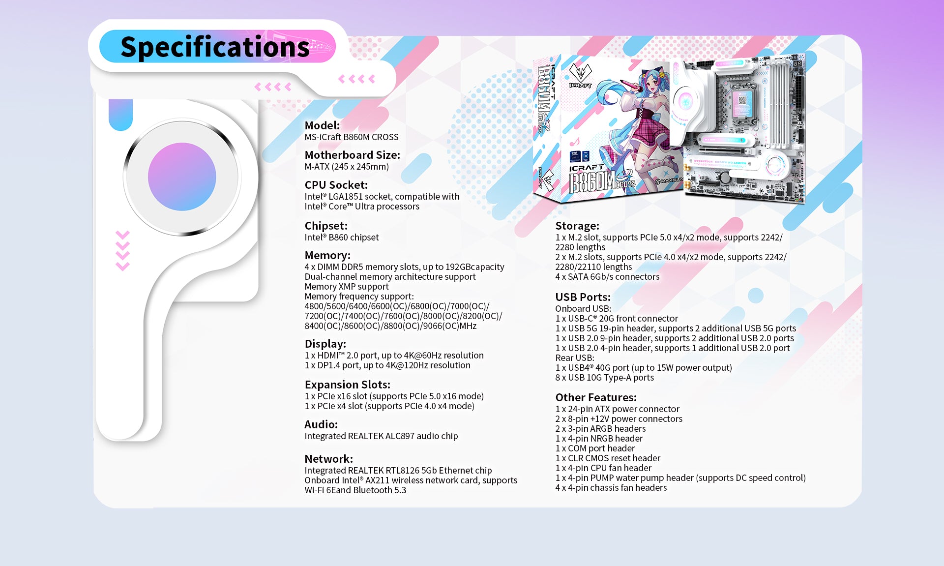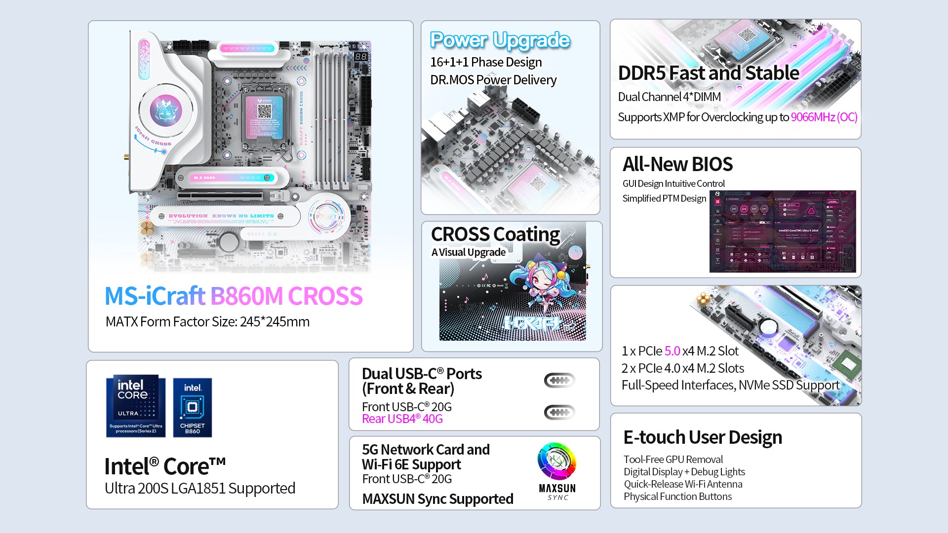 - Intel® LGA1851 Socket for Intel® Core™ Ultra processors & Intel® B860 Chipset
