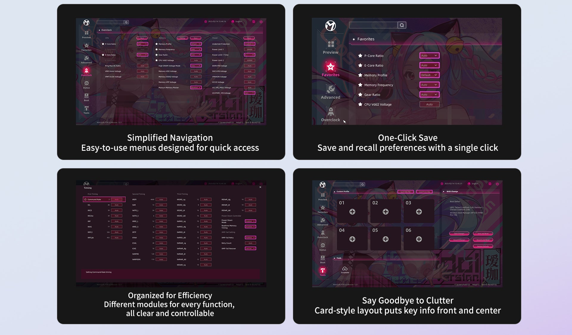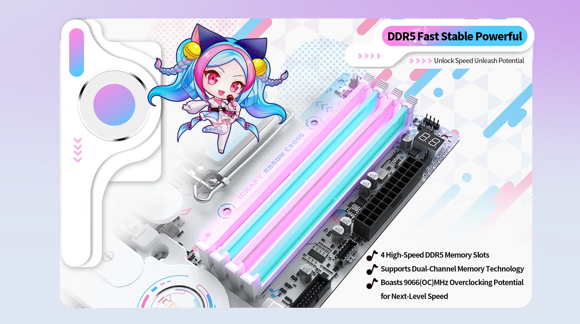 - 4 x DIMM DDR5 Slots, up to 192GB, with XMP support and up to 9066MHz (OC)