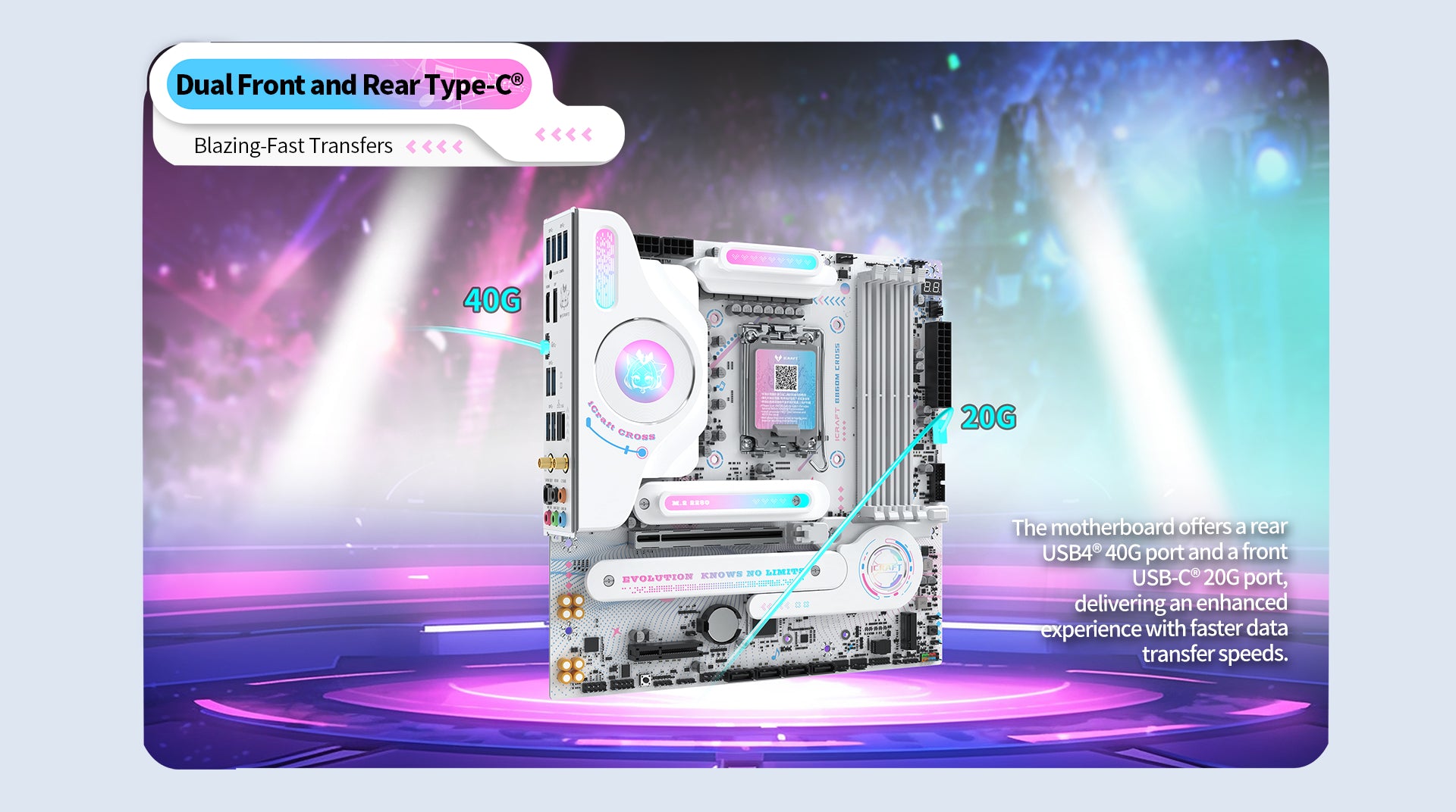- USB4® 40G (15W power), USB-C® 20G, and 8 x USB 10G Type-A