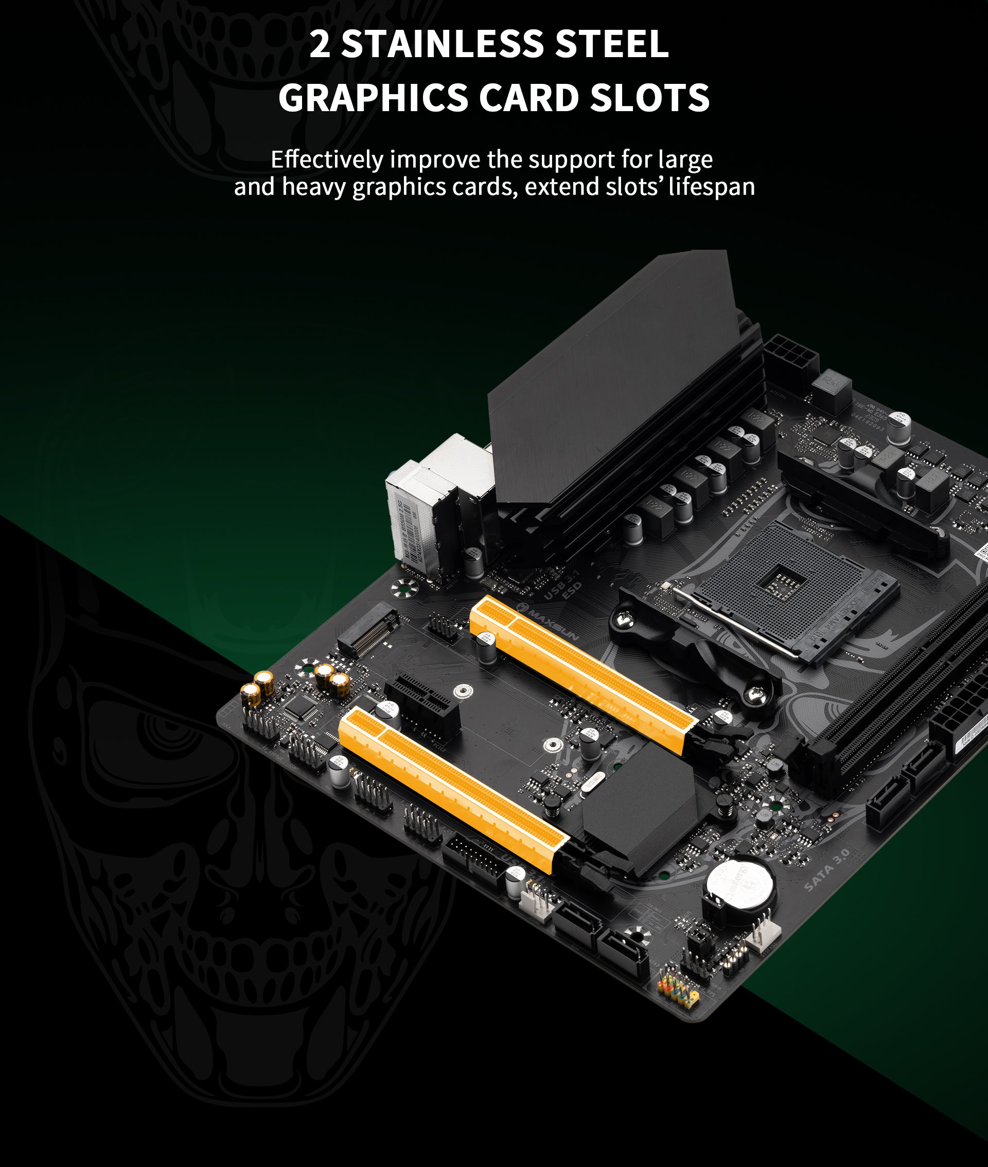 - Dual alloy armor graphics card slots