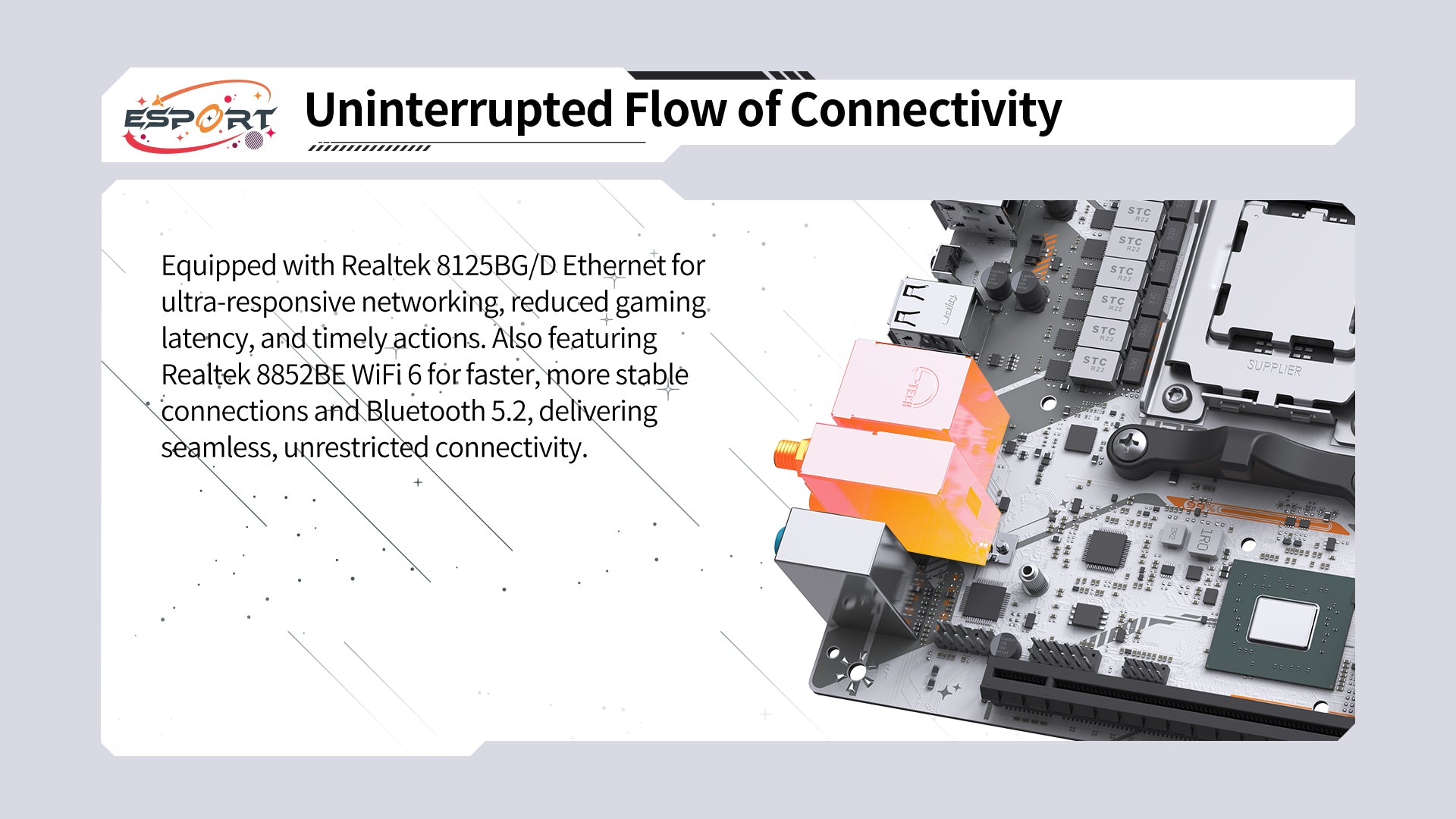 Built-in Realtek 8852BE WiFi 6 with Bluetooth 5.2 support.