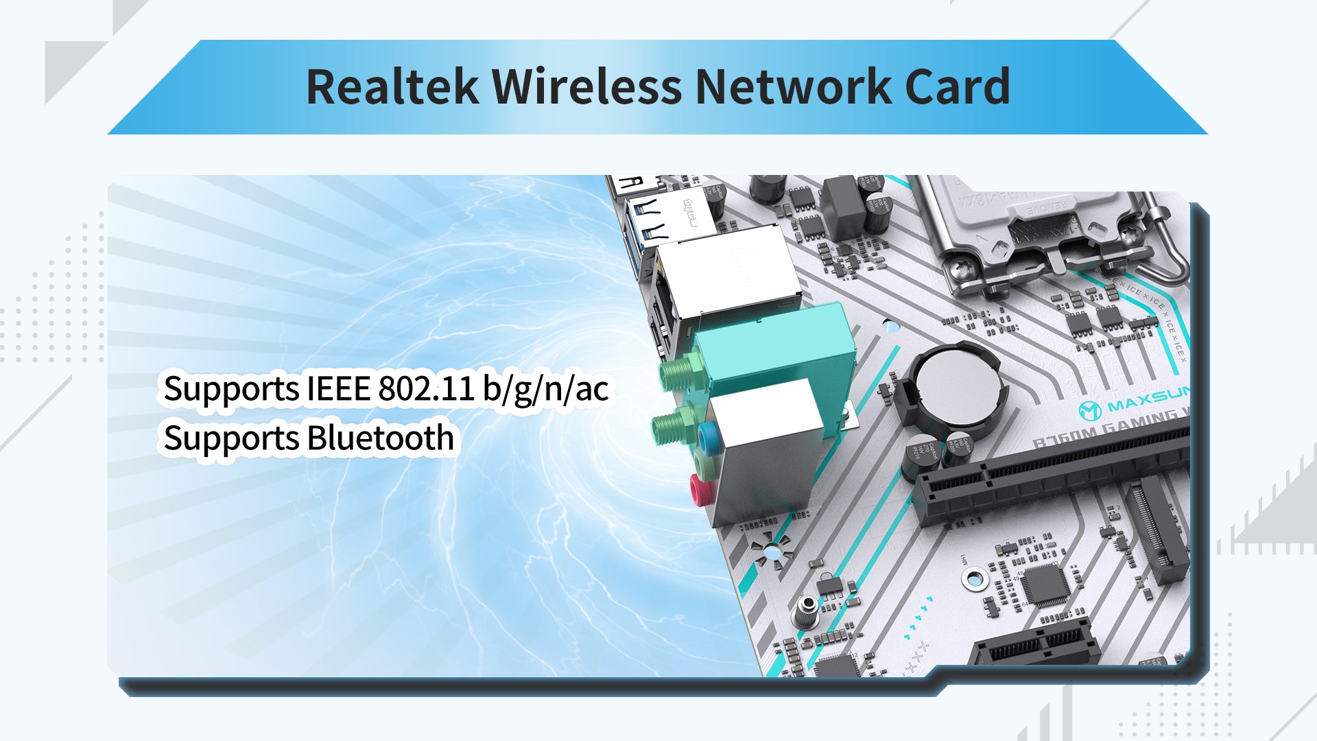 No extra cards, no extra fuss—onboard Realtek wireless with Bluetooth support keeps you connected.