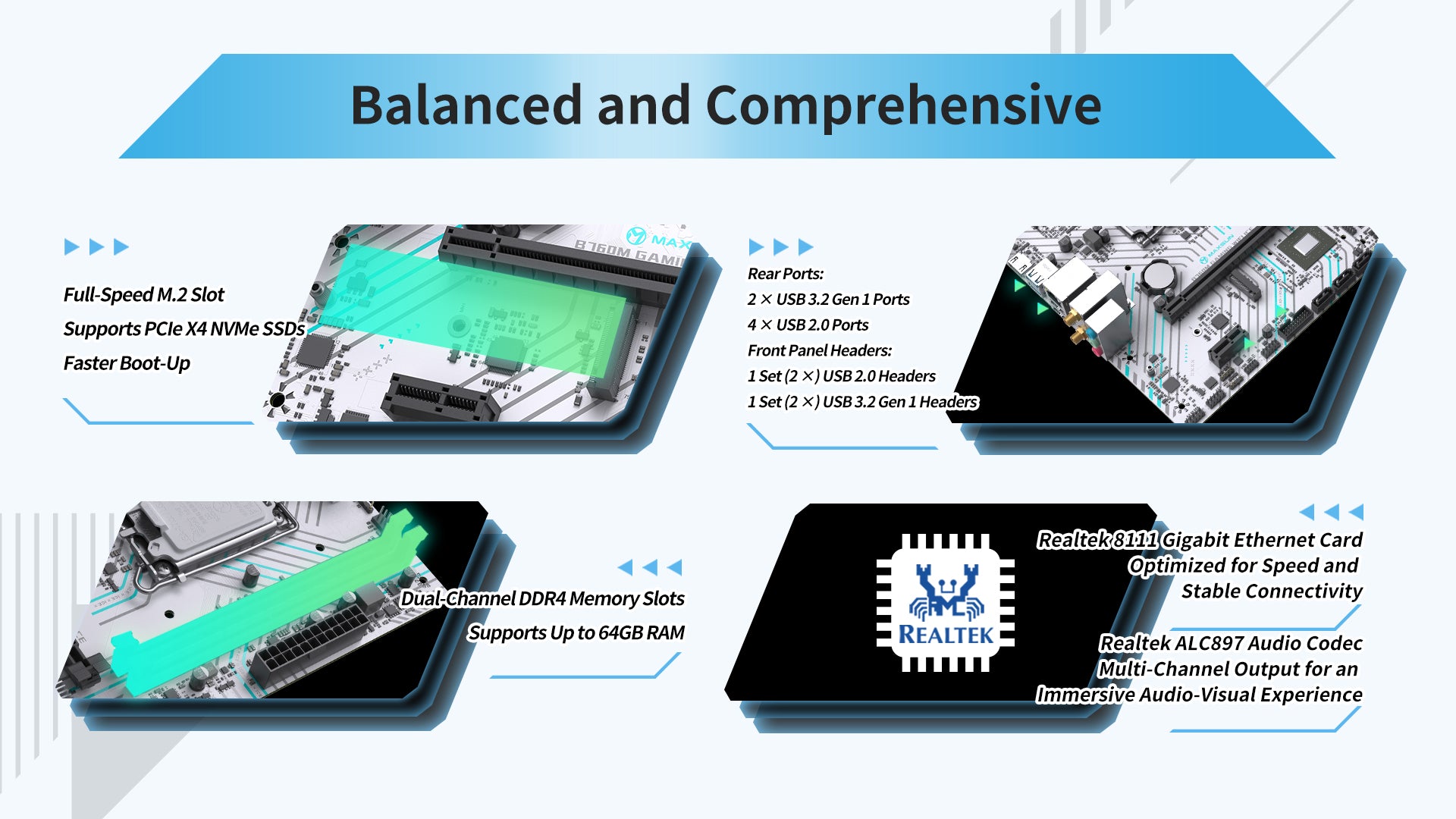 Light it up your way with 2 × 5V ARGB and 1 × 12V RGB headers—custom lighting made easy.Intel 12th/13th/14th Gen Ready