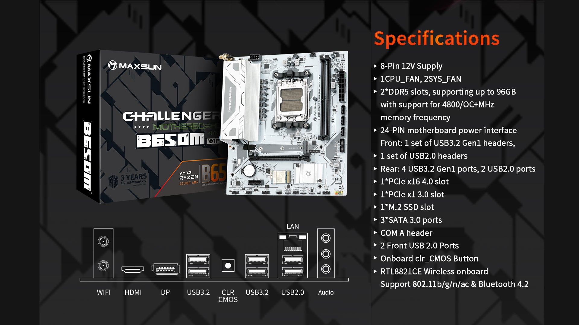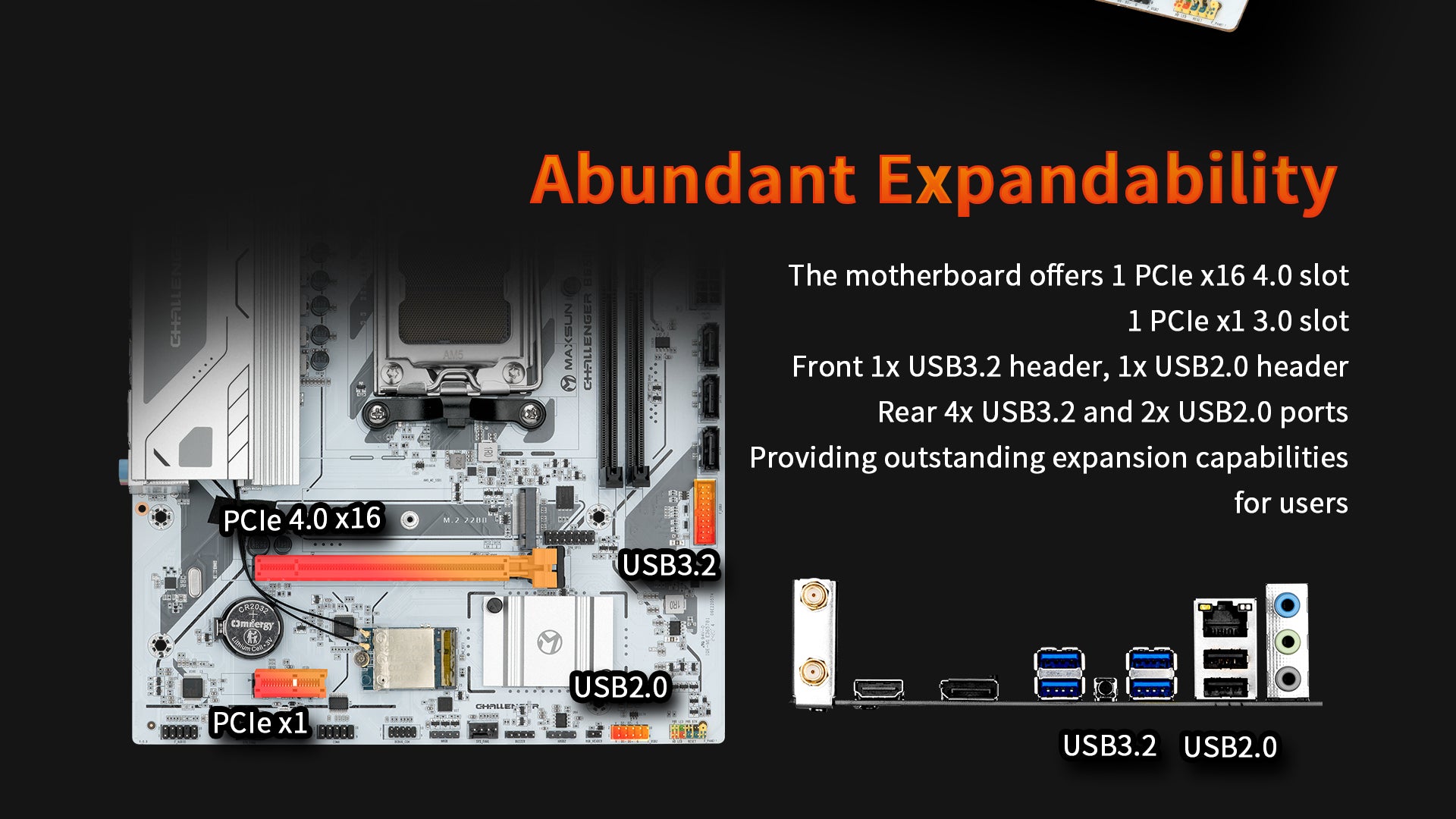 - Onboard rear ports: 4* USB3.2 GEN1 ports, 2* USB2.0 ports
