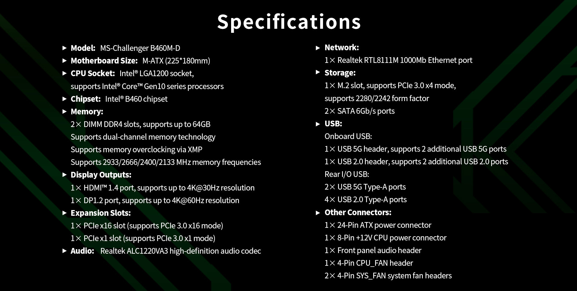 1 × USB 3.2 Gen1 header (supports 2 × USB 5Gbps)