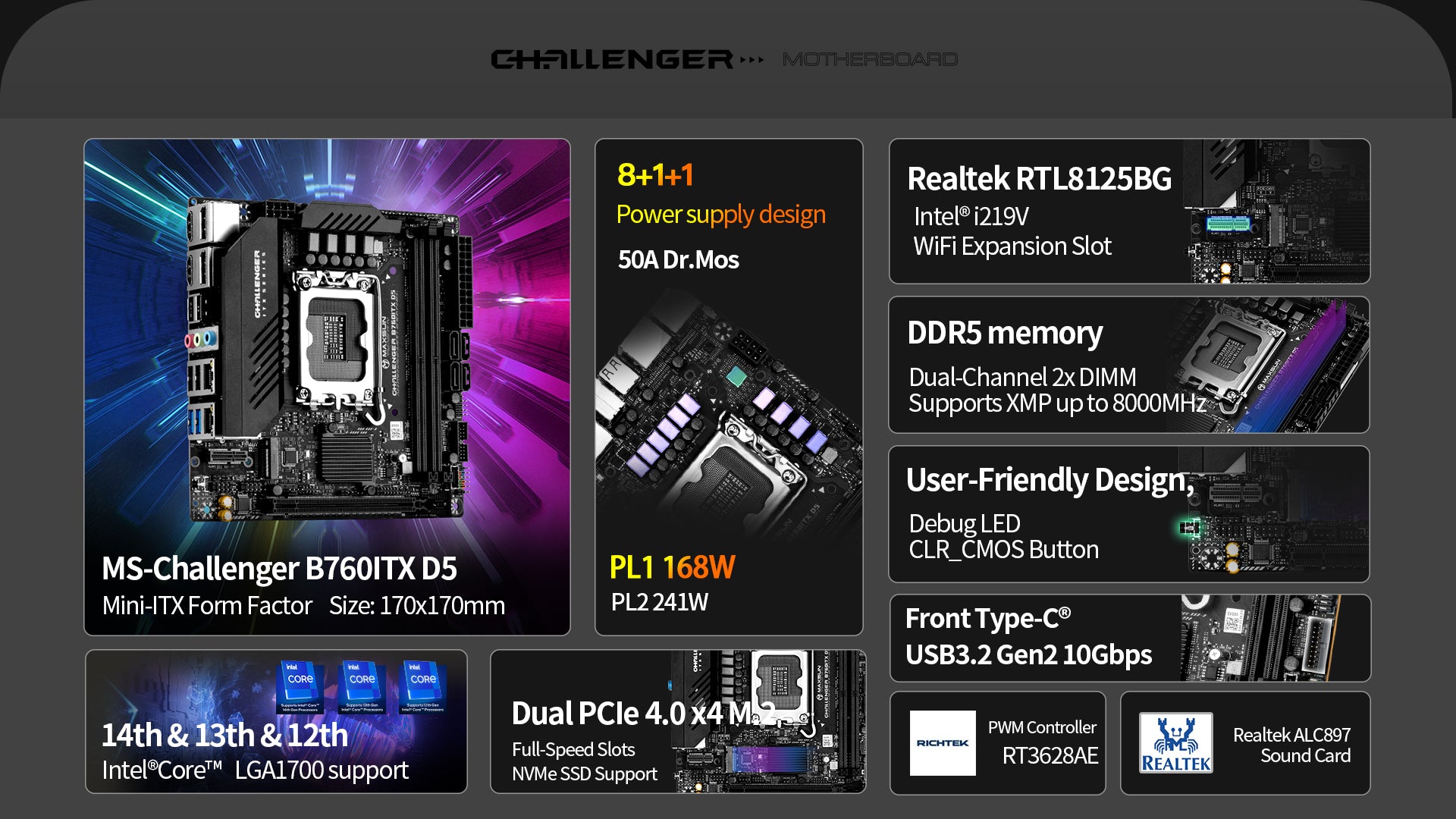 • Supports 12th/13th/14th Gen Intel® Core™ Processors, Pentium® Gold and Celeron® Processors