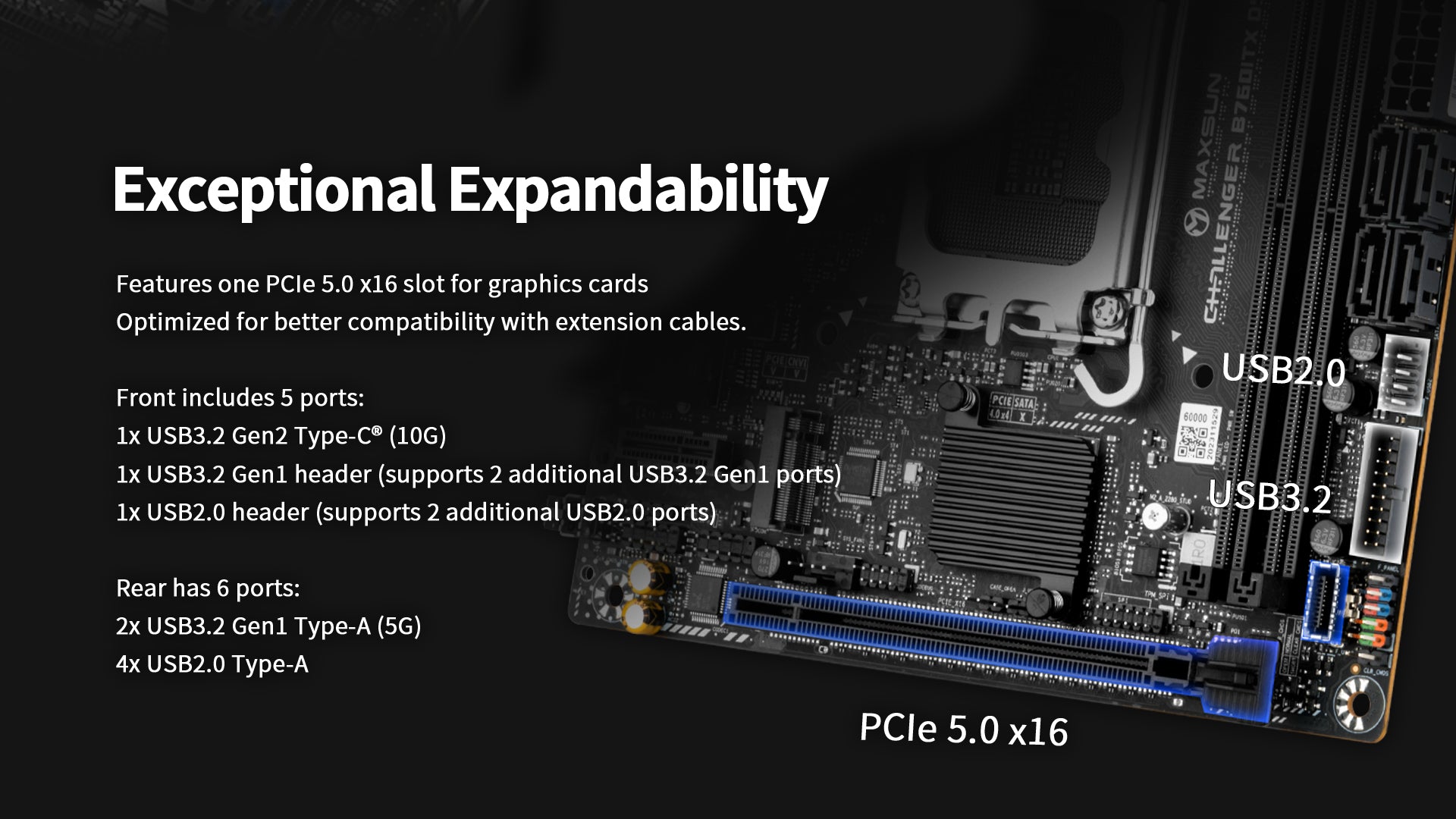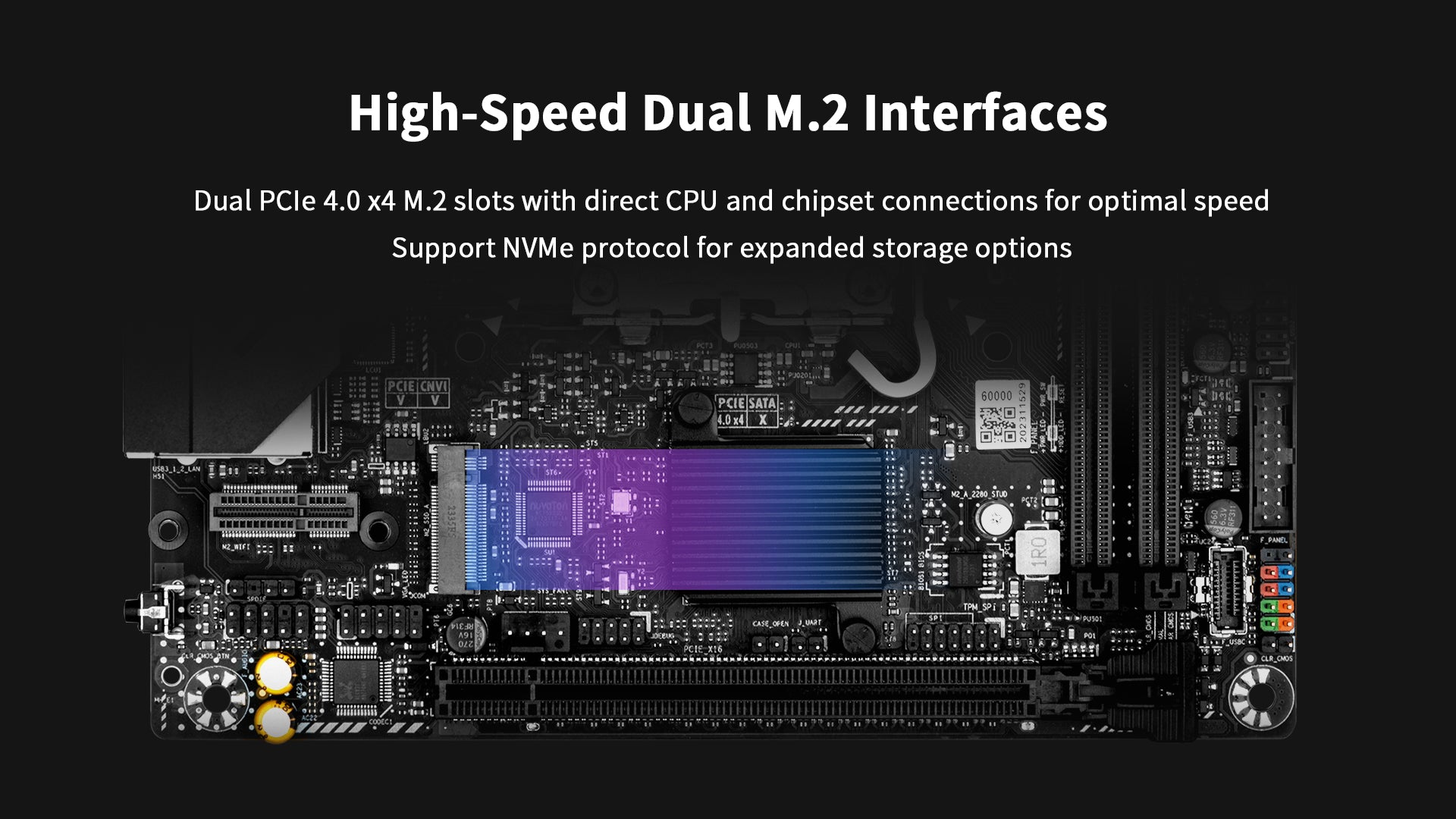 Powerful Expansion: 1× PCIe 5.0 x16 and 2× PCIe 4.0 M.2 slots for GPU and NVMe storage
