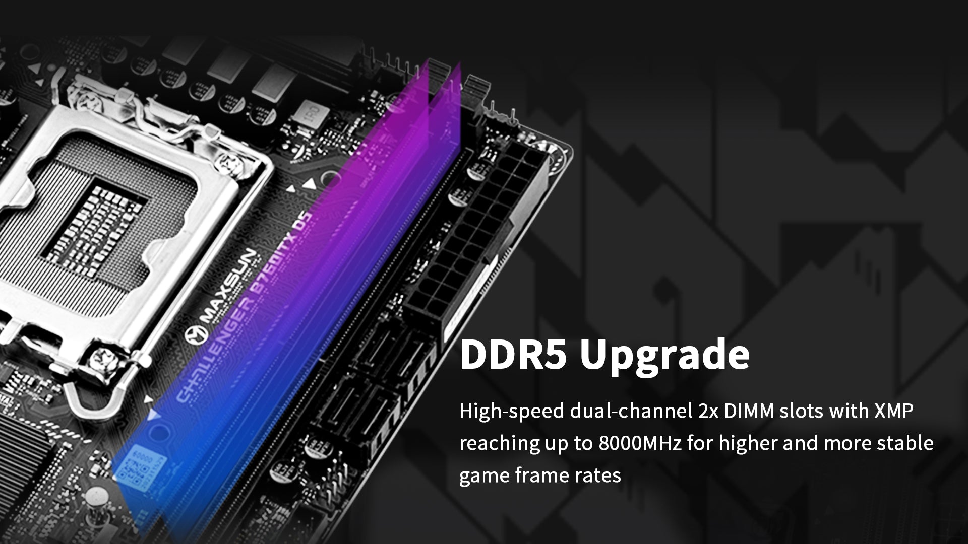 Ultra-Fast Memory: Dual DDR5 slots, supports XMP up to 8000MHz (OC)