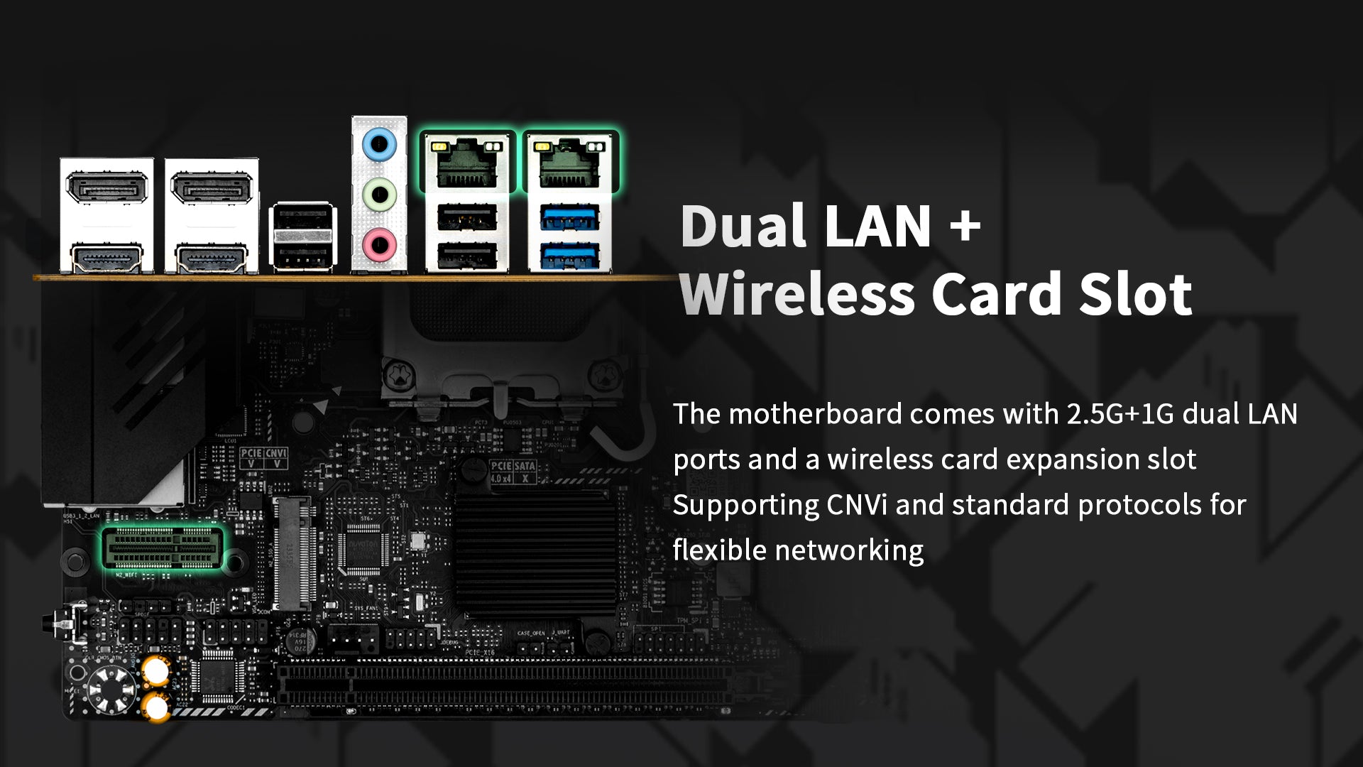 Reliable Networking: Dual LAN (2.5G + 1G) with optional M.2 WiFi slot
