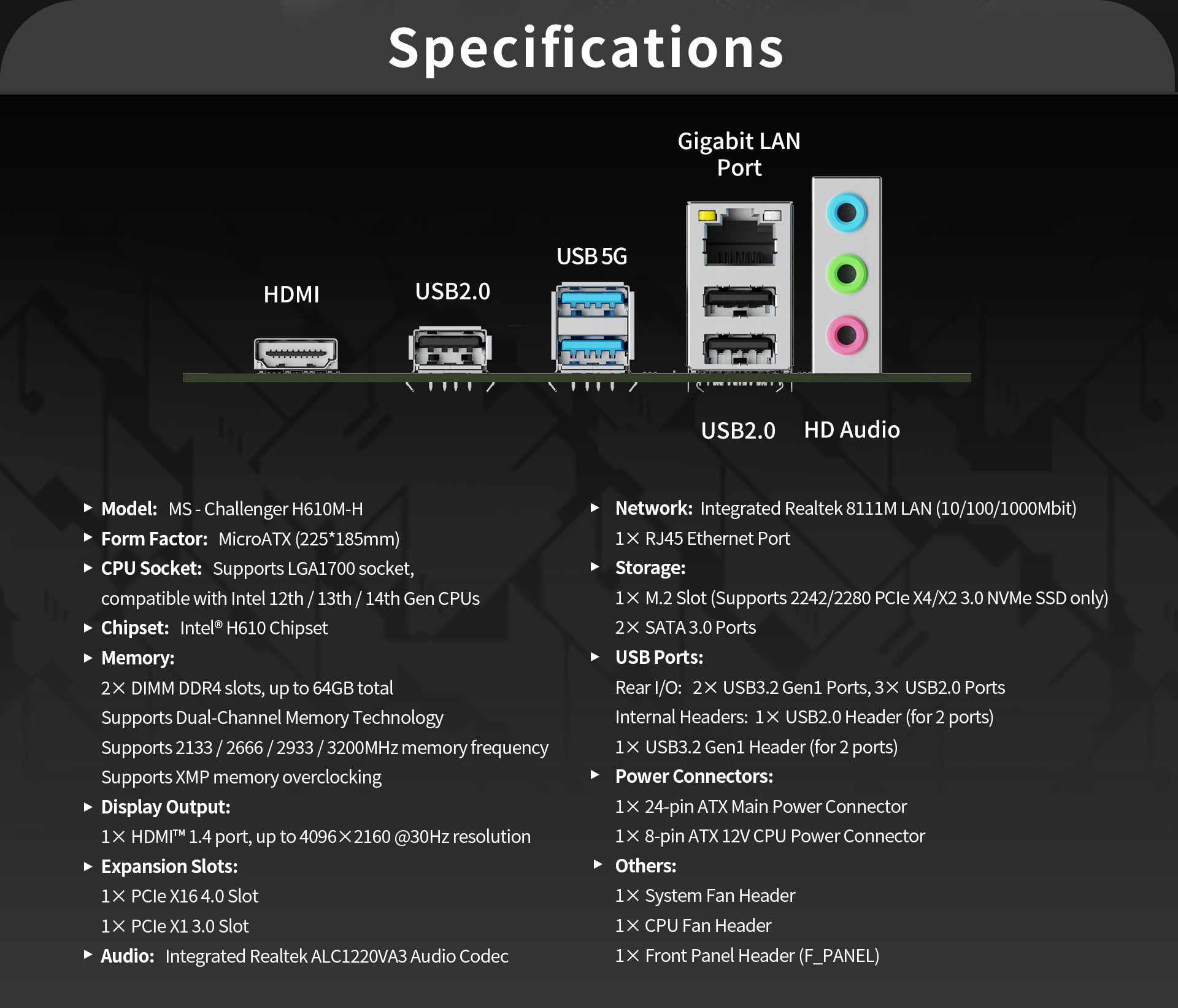 - Supports LGA1700 socket, compatible with Intel® 12th / 13th / 14th Gen CPUs