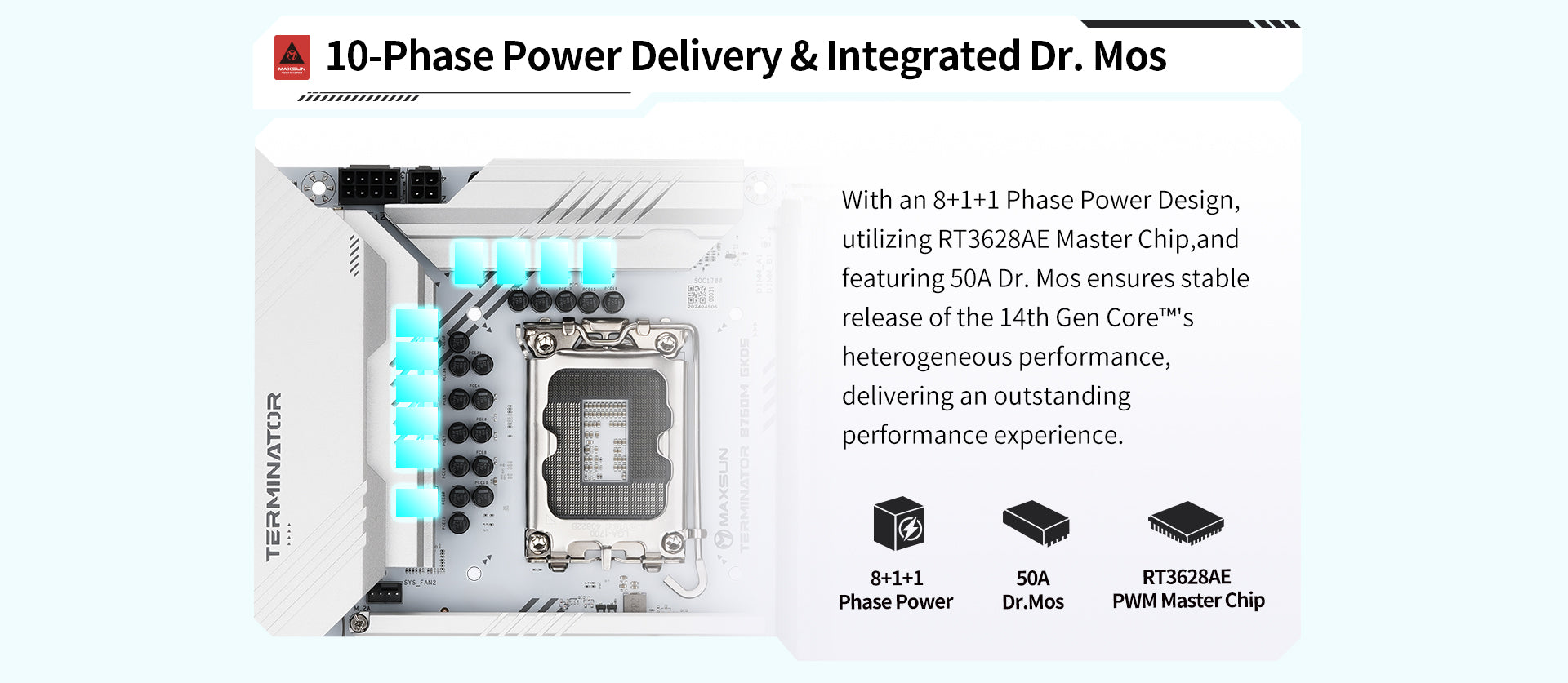 - Robust Power Delivery: Equipped with an 8+1+1 phase power design, ensuring stable and efficient performance under various computing loads.