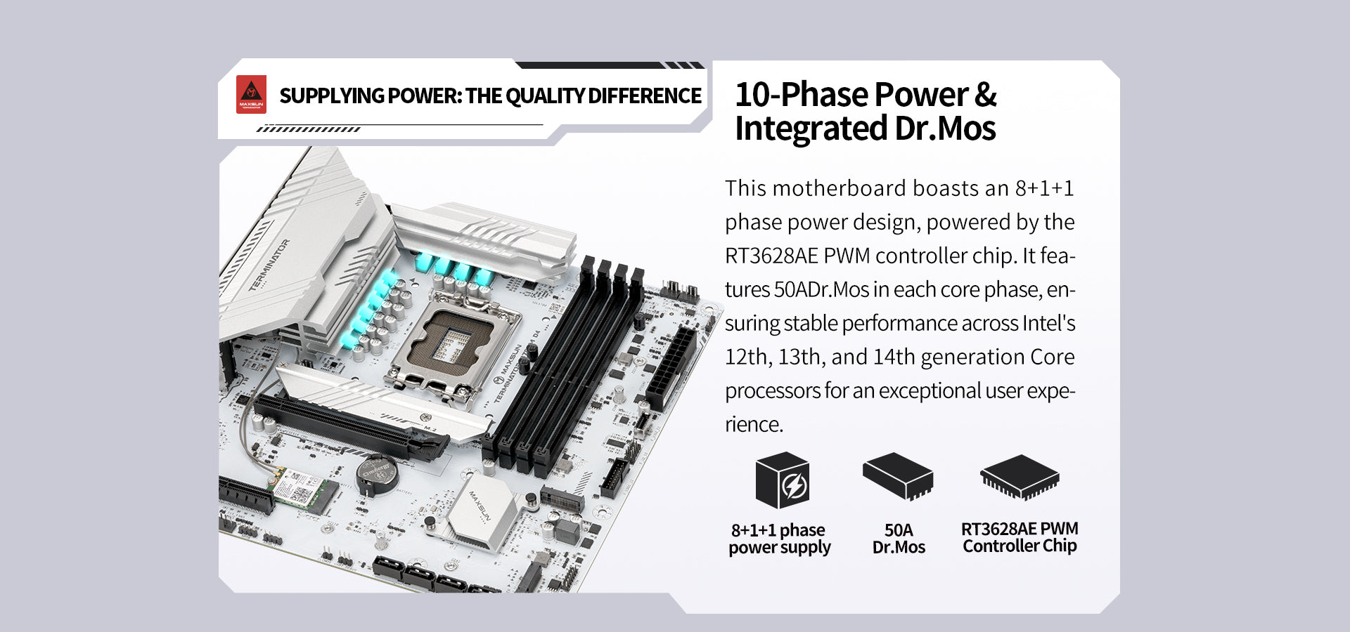 - Unmatched Power Performance: 8+1+1 Phase Power Design & Integrated Dr. MOS for stable performance with Intel’s 12th, 13th, and 14th Gen Core processors.