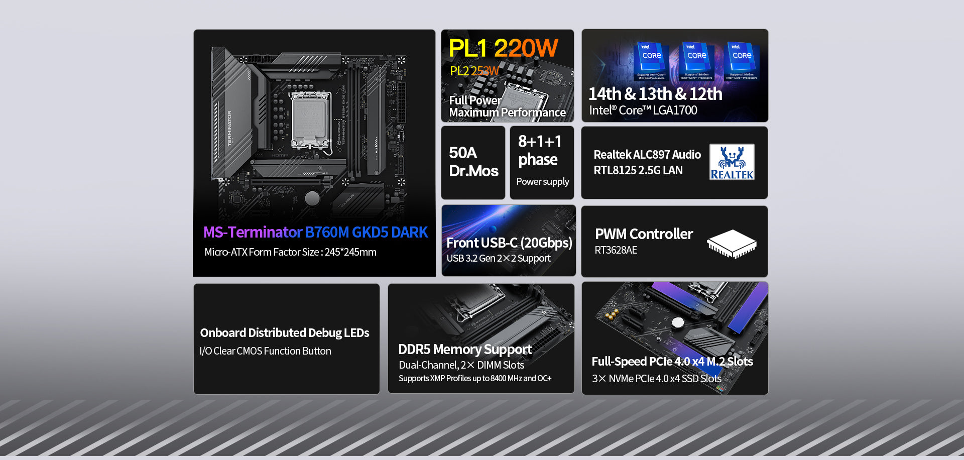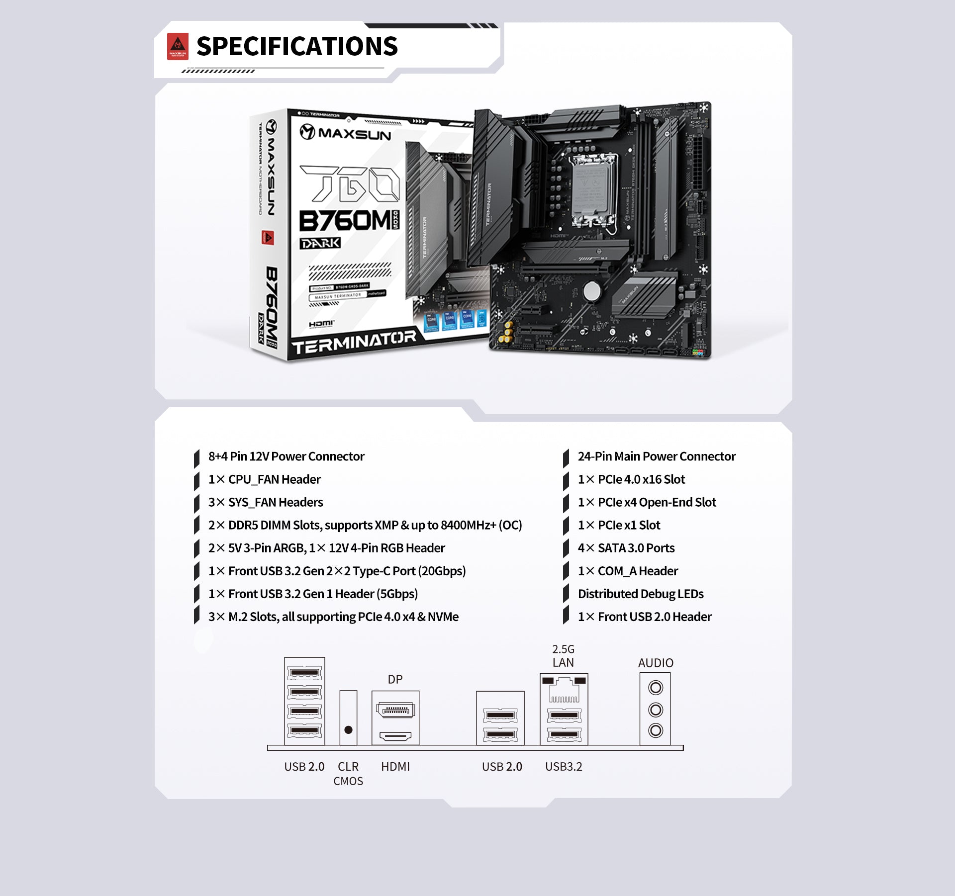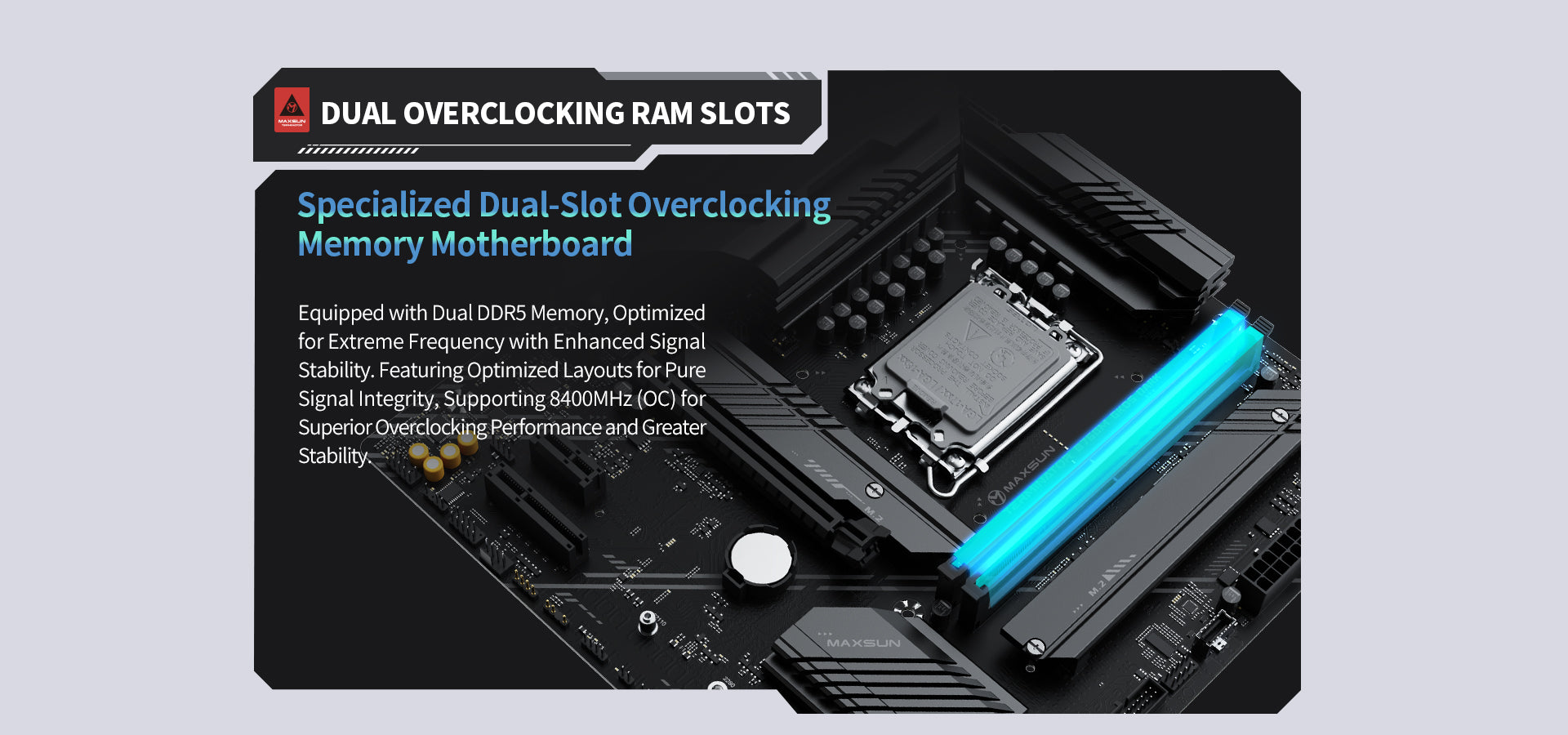 - 2× DDR5 DIMM Slots, supports XMP & up to 8400MHz+ (OC)