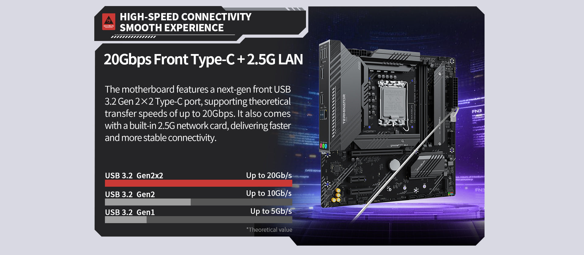- 1× Front USB 3.2 Gen 2×2 Type-C Port (20Gbps)
