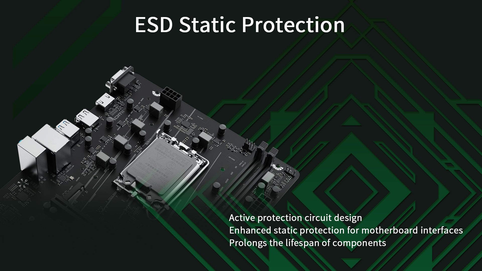 Proteção ESD completa – Proteção estática para prolongar a vida útil dos componentes.