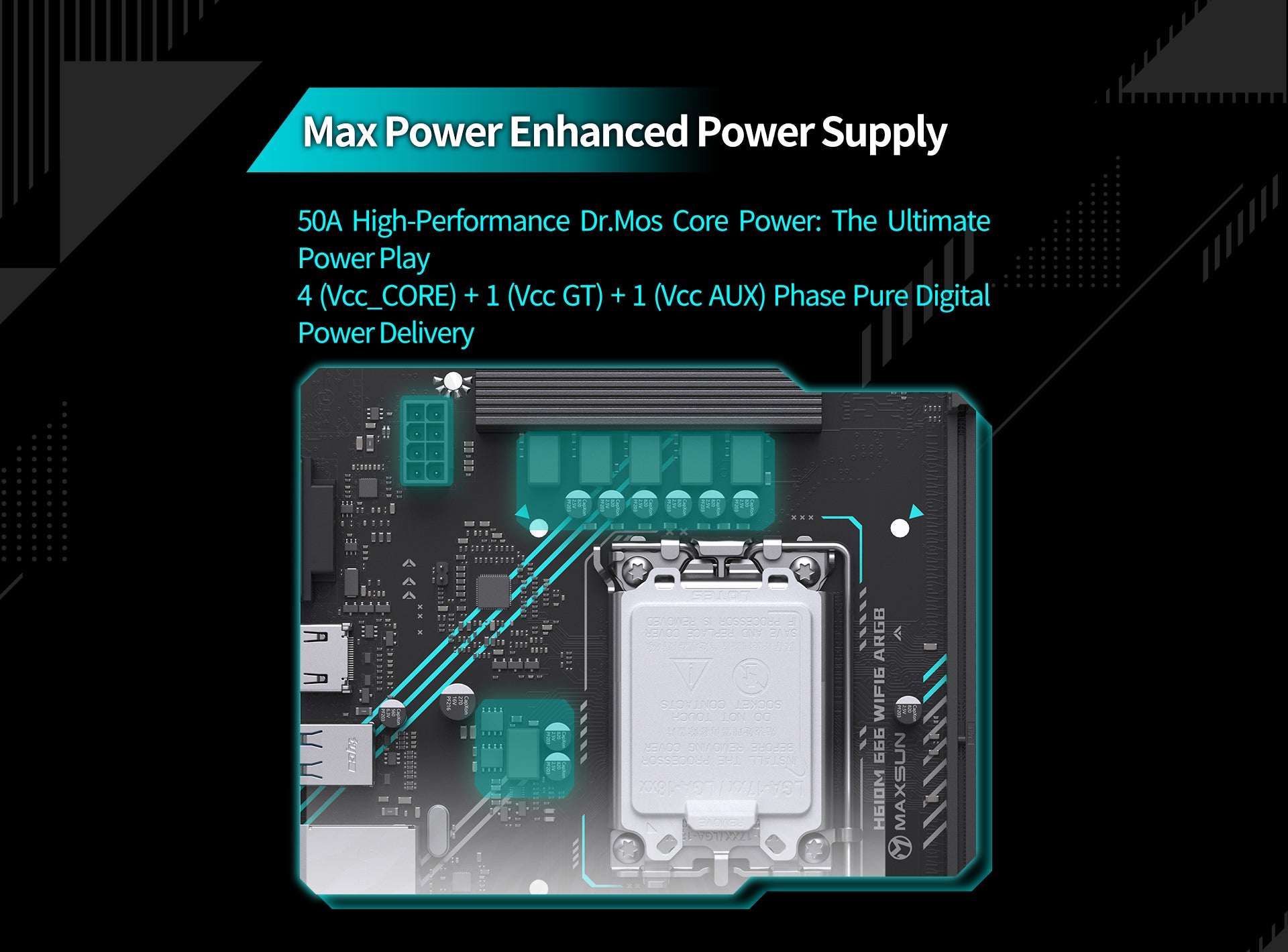 - 4+1+1 Phase Dr.MOS Power Supply: High-spec power delivery for reliable performance.