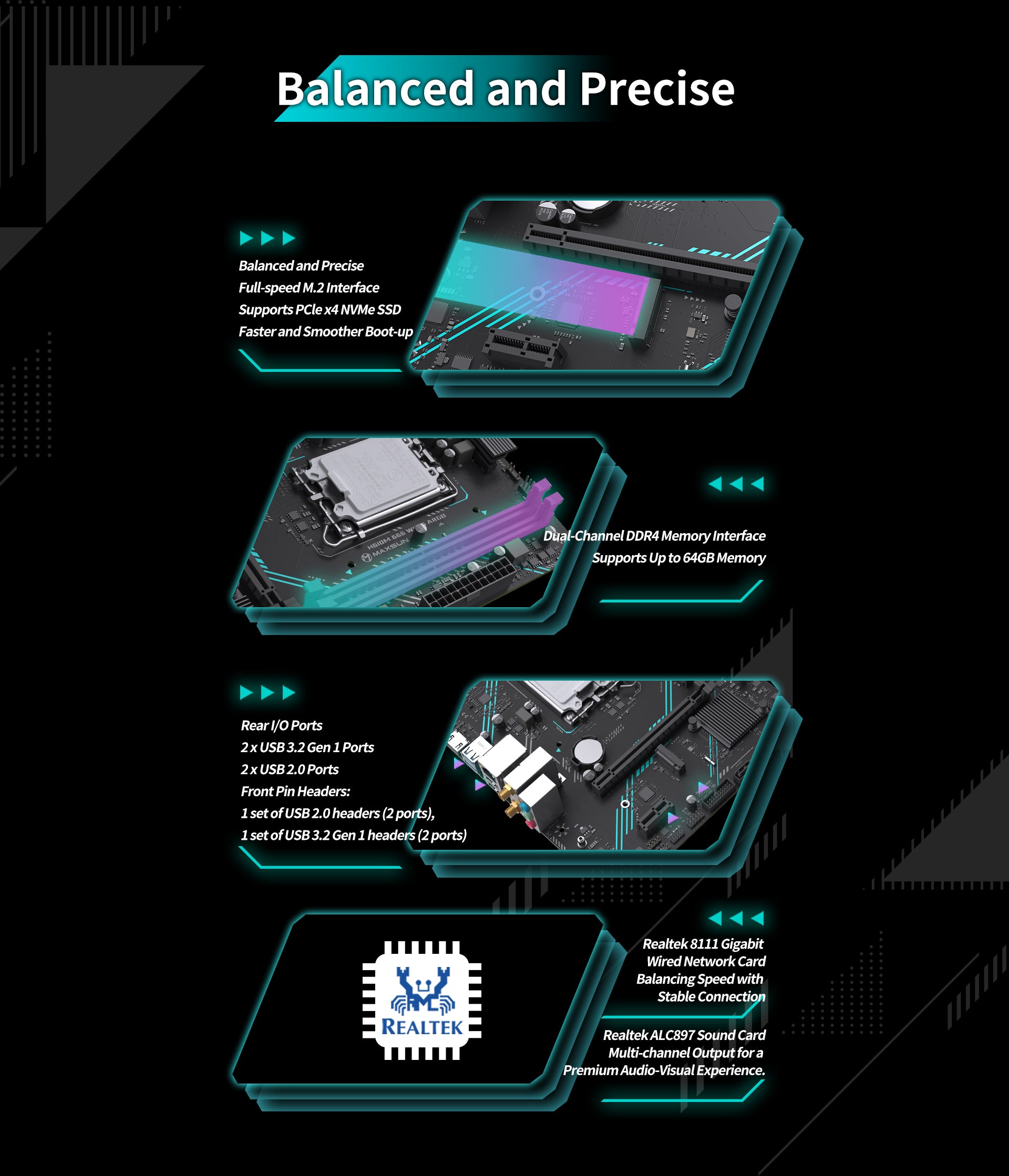 - Supports 12th/13th/14th Gen Intel® Core™ Processors, Pentium® Gold and Celeron® Processors