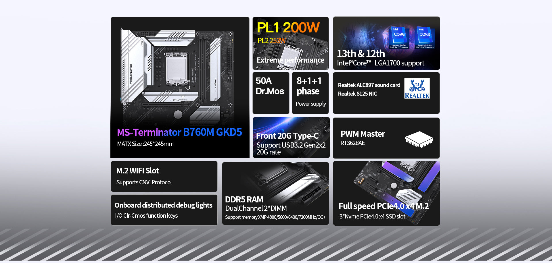 - Supports 12th/13th Gen Intel® Core™ Processors, Pentium® Gold and Celeron® Processors
