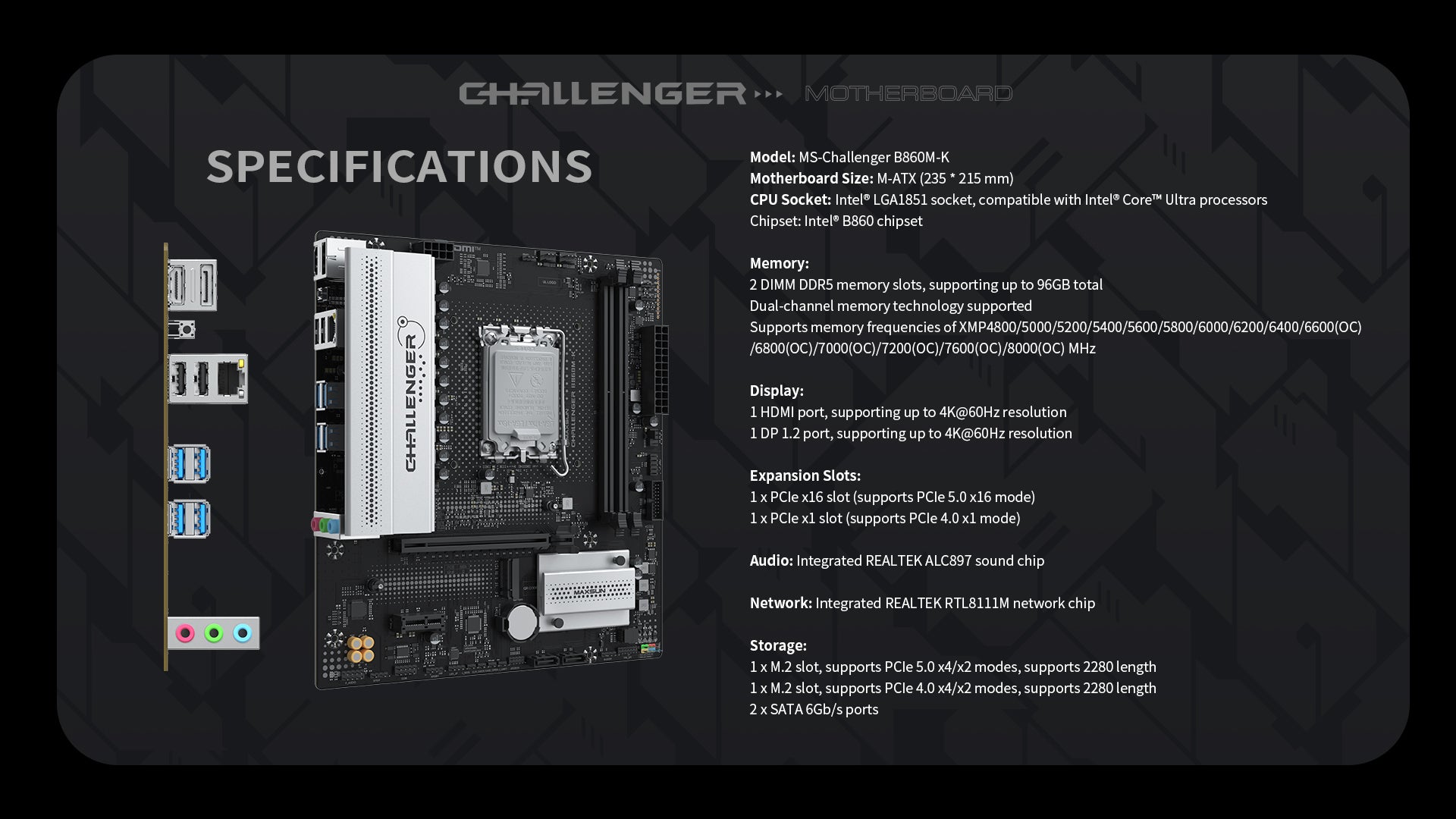 • Intel® LGA1851 socket, compatible with Intel® Core™ Ultra processors