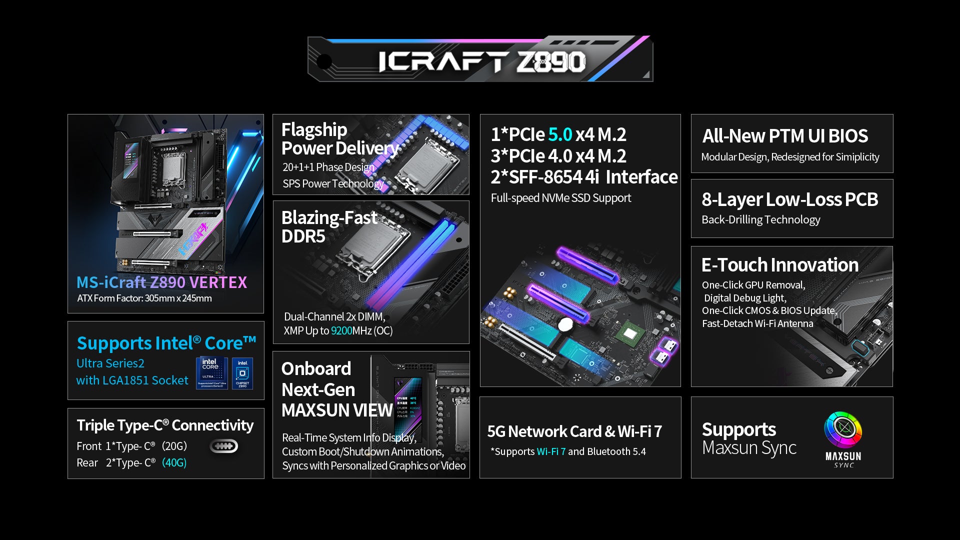 - Intel® LGA1851, compatible with Intel® Core™ Ultra processors
