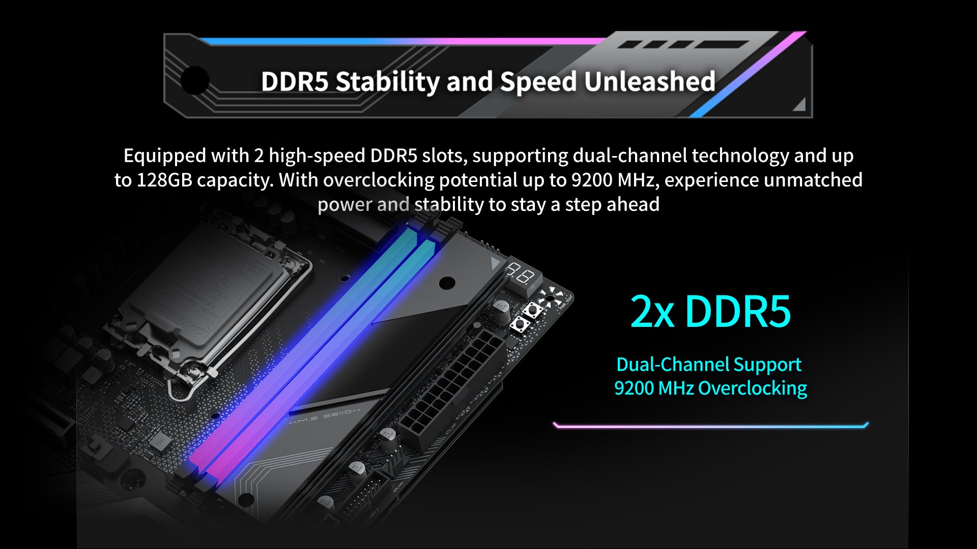 - 2 x DIMM DDR5 slots, supporting up to 128GB