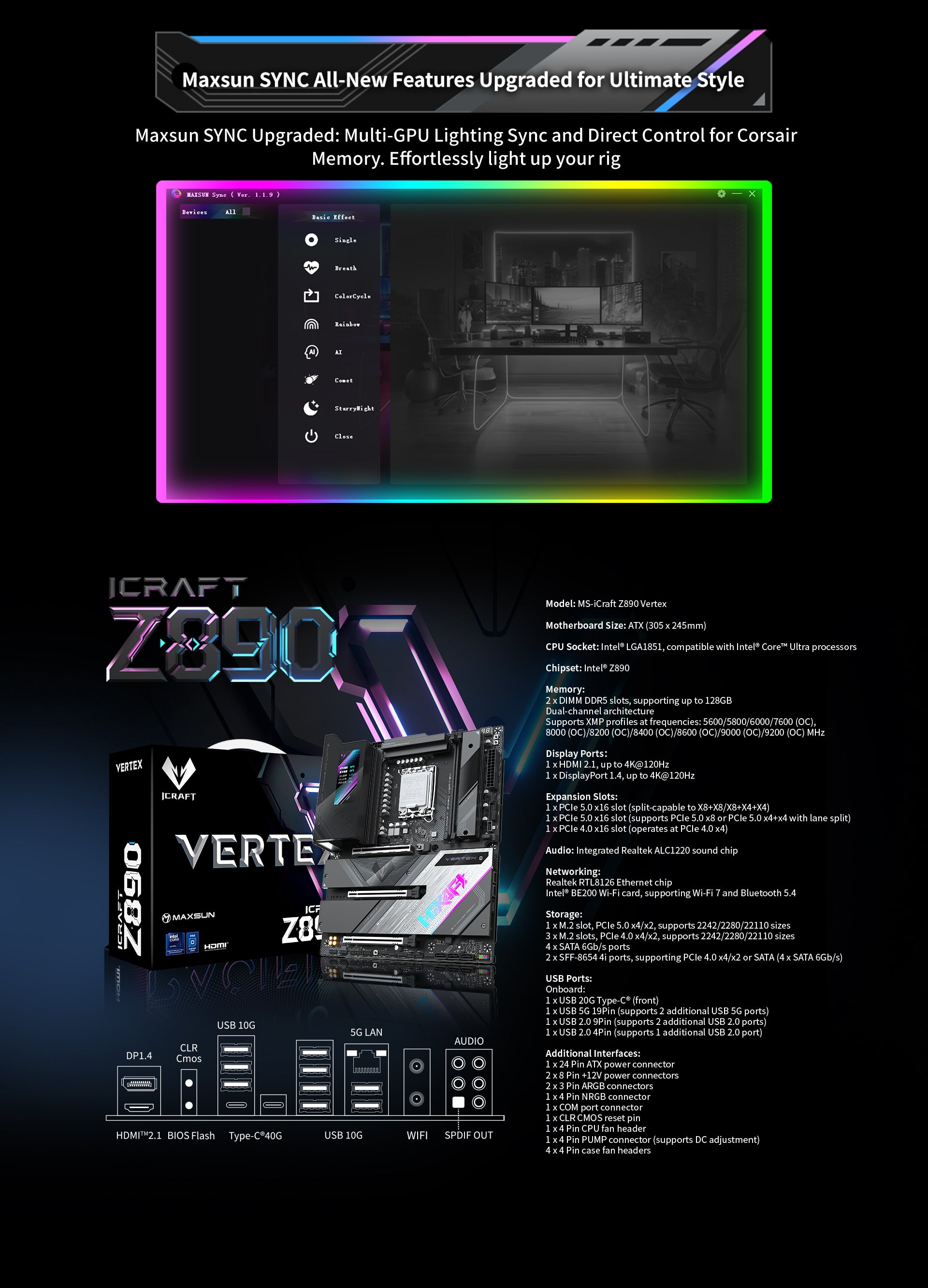 - Features: Maxsun Sync RGB, BIOS Flash, onboard power/reset/RGB buttons, Resizable Bar support.