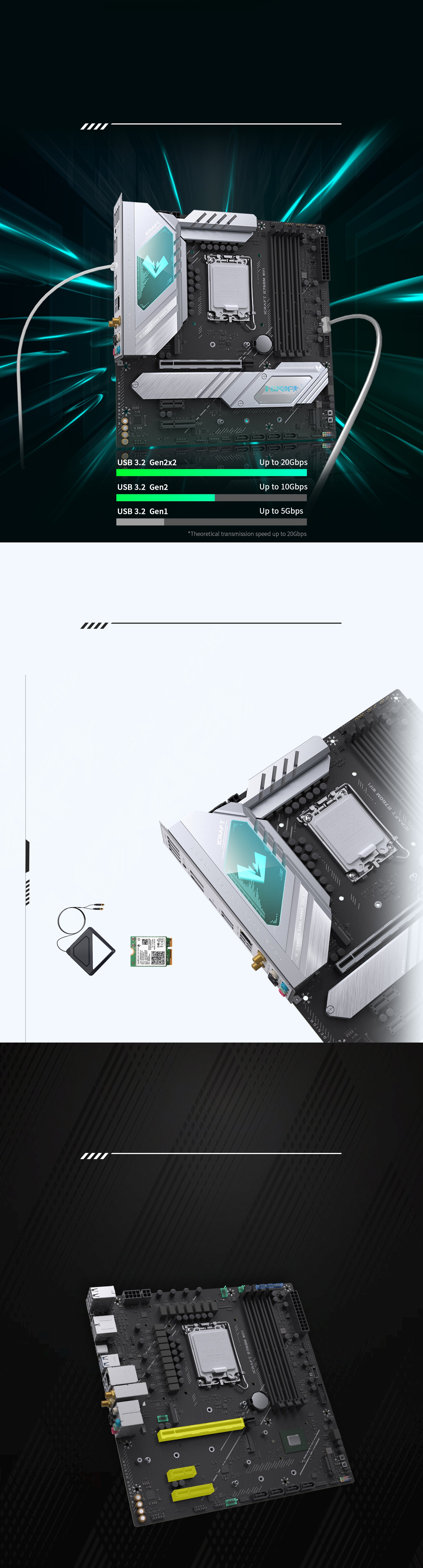 The motherboard provides a rear USB 3.2Gen2 X 2 Type-C interface that provides 20Gbps theoretical transfer speed