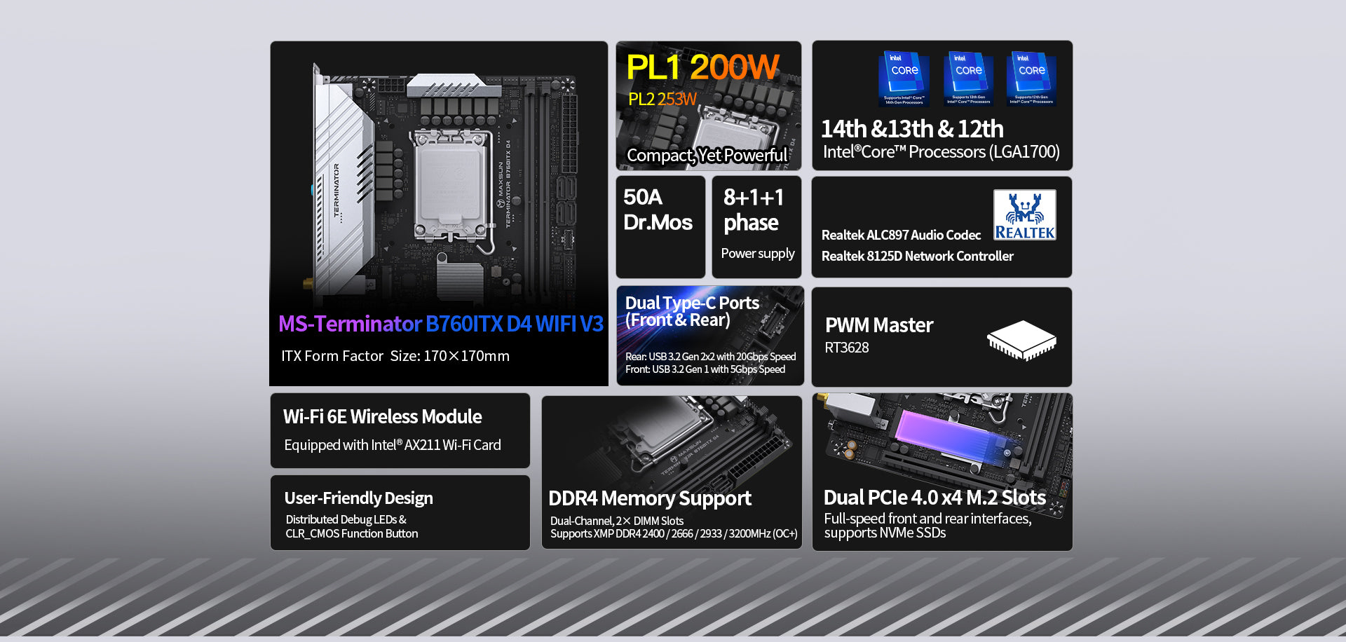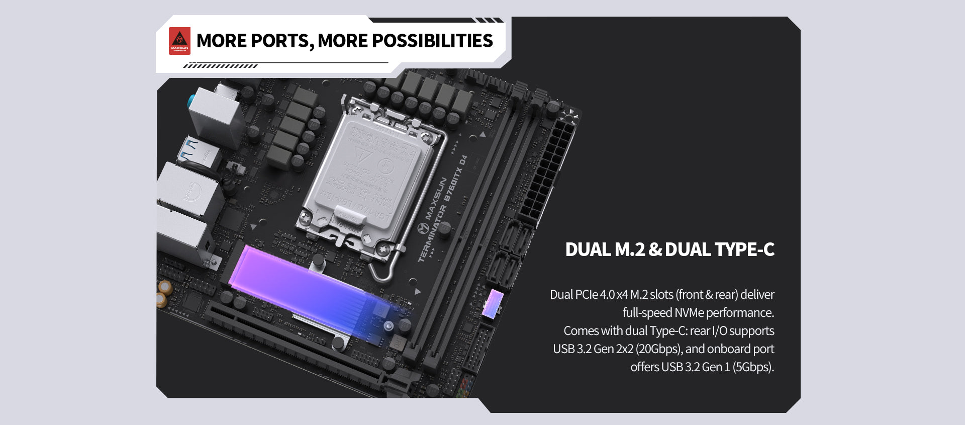 - 2 × M.2 Slots (M.2_A & M.2_B Support PCIe 4.0 x4 Mode)