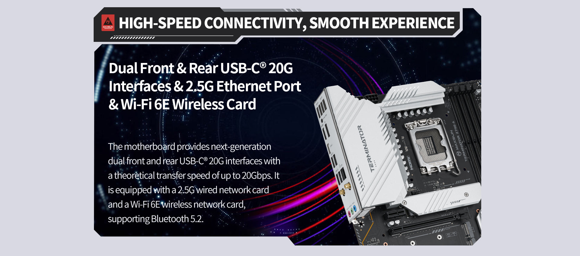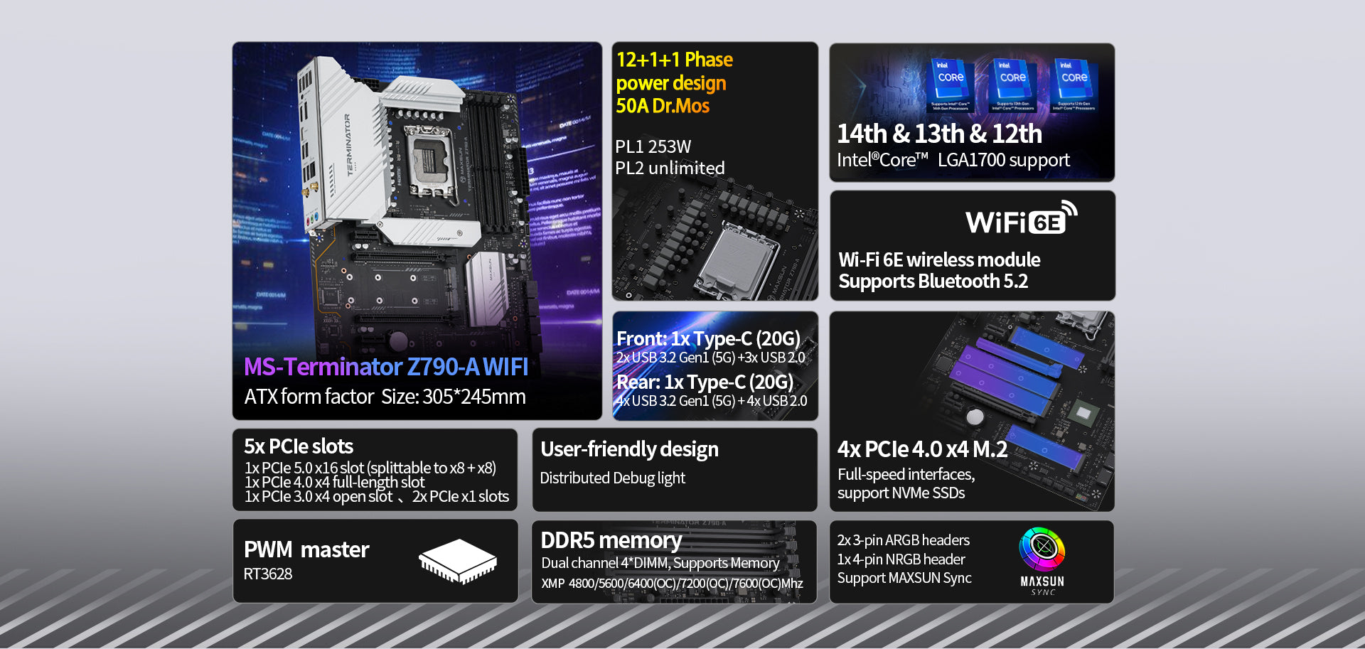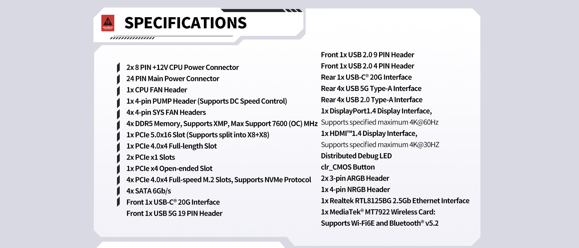 - 1 × PCIe 5.0 x16 Slot (Supports split into X8+X8)