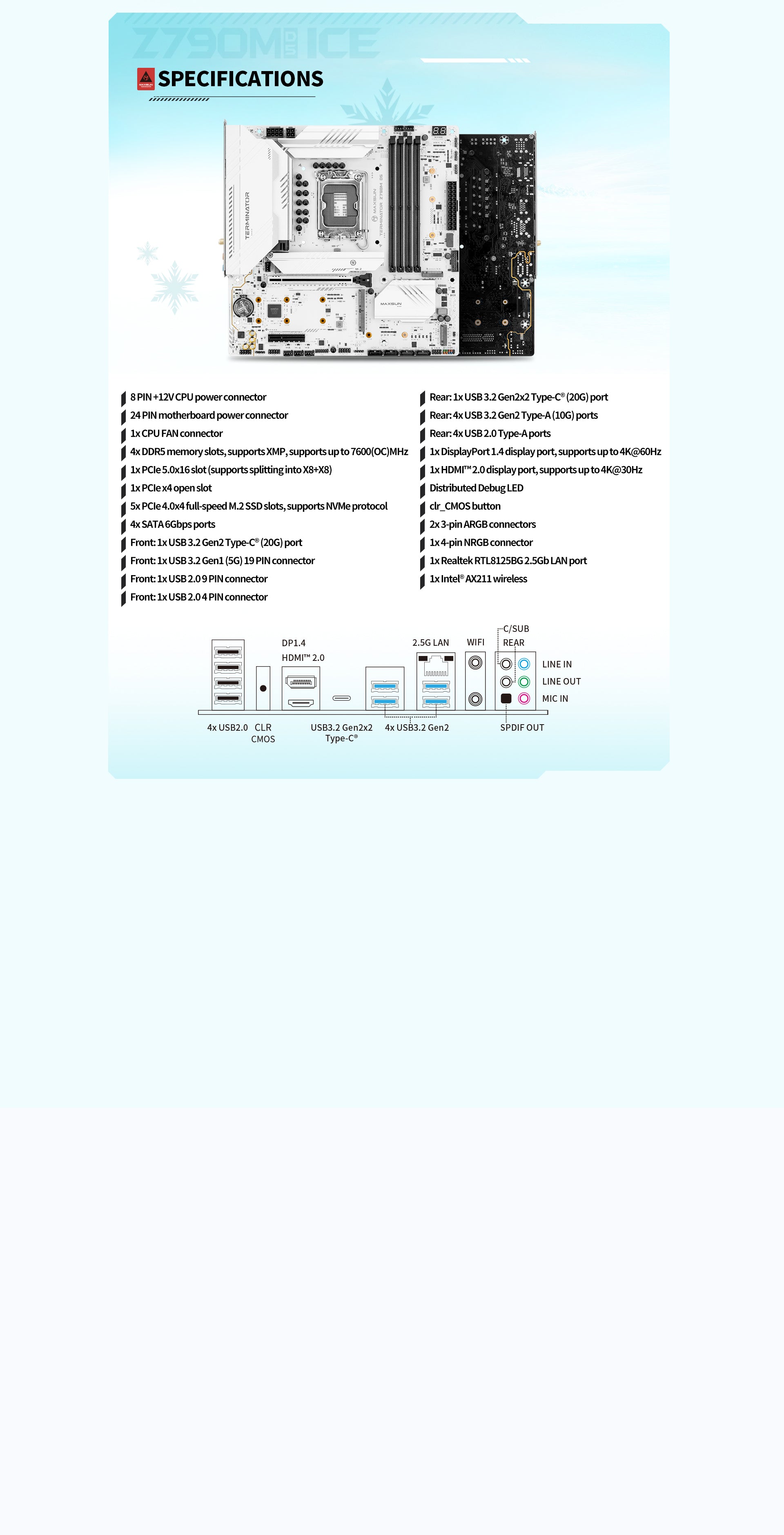 - Intel Z790 Chipset: Supports 12th/13th/ 14th Gen Intel® Core™, LGA 1700.